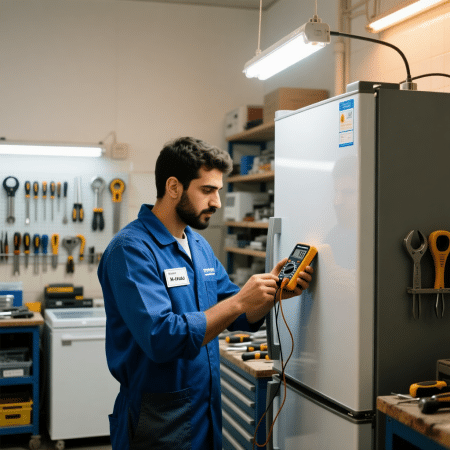 بررسی و رفع مشکلاتی مانند خرابی برد، ترموستات، گاز یخچال و موتور